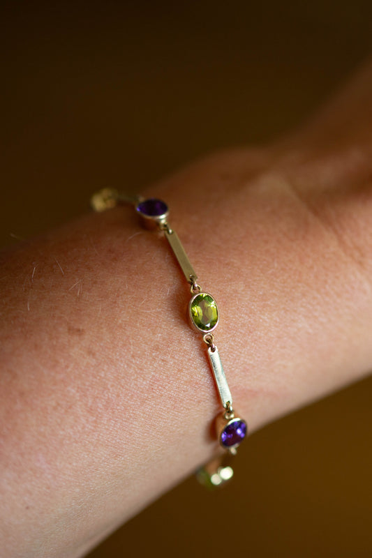 Amethyst and Peridot Bar Bracelet