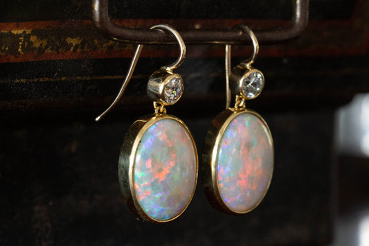 Opal and Diamond Double Drop Earrings