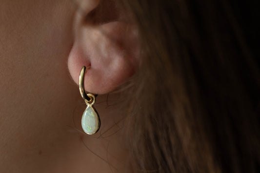Teardrop White Opal Doublet Hoops