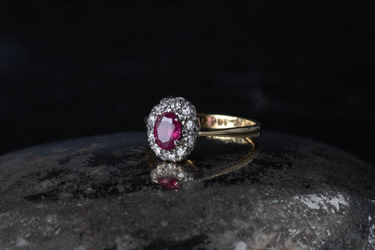 Antique Oval Ruby and Diamond Cluster Ring