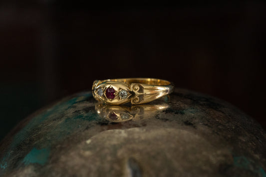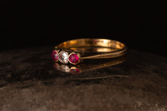 Victorian Ruby and Diamond Three Stone Ring