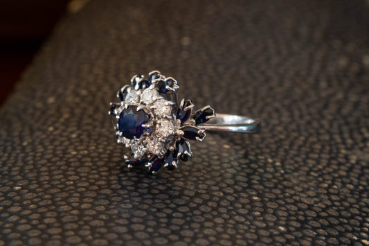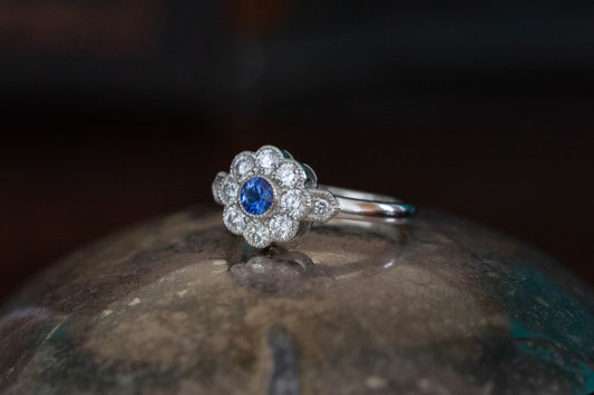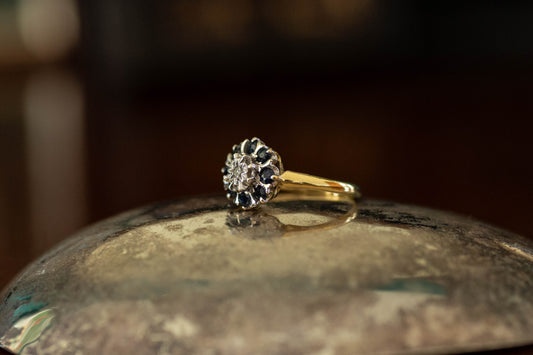 18ct Yellow Gold Sapphire & Diamond Cluster Ring