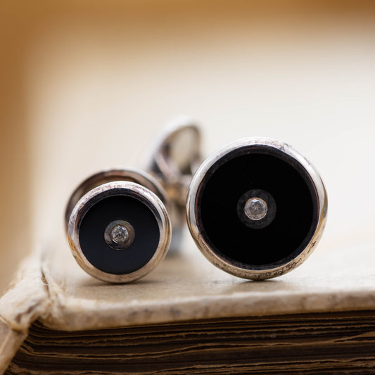 Silver Onyx and Diamond Dress Studs and Cufflinks