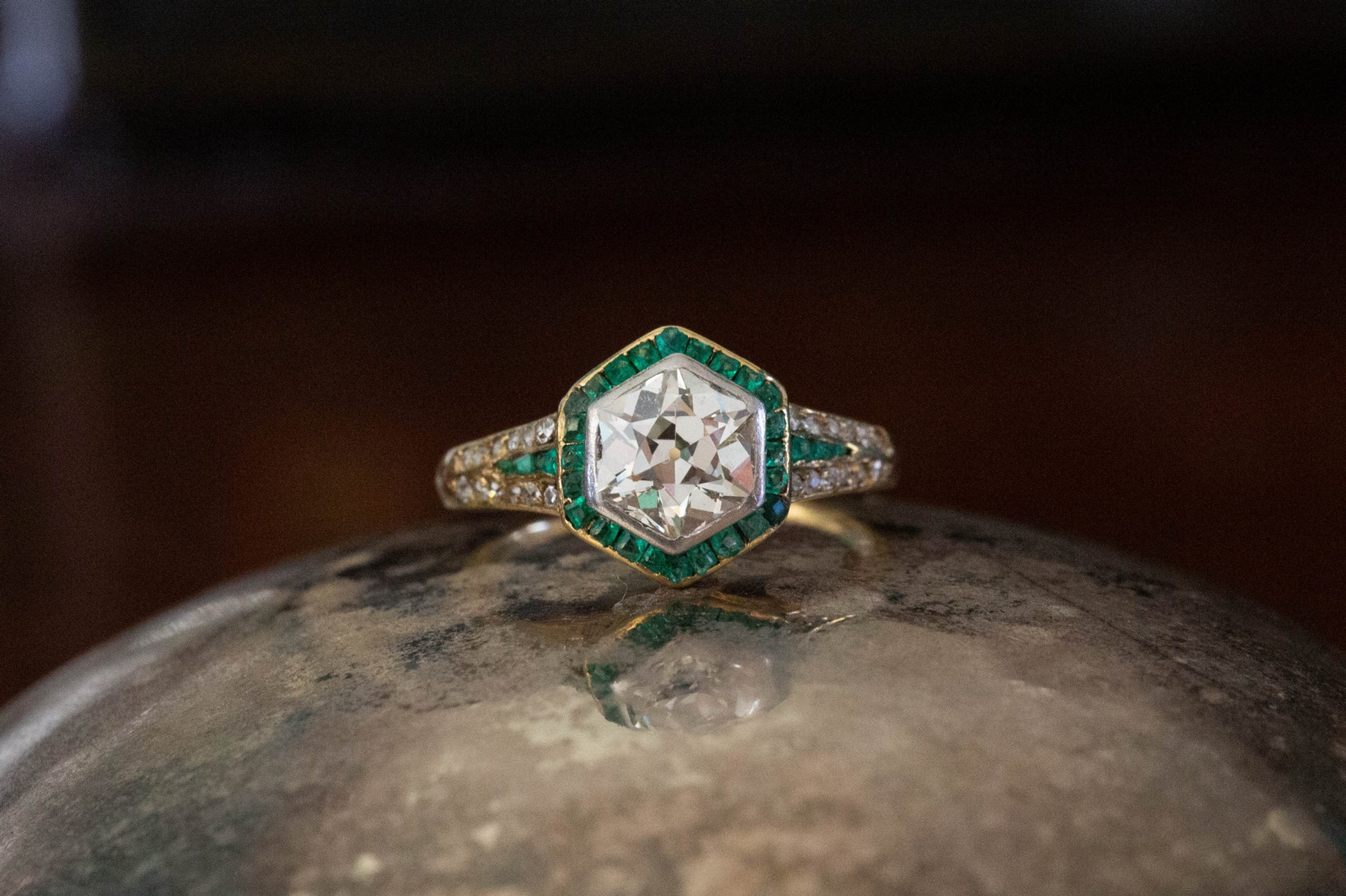 Emerald and diamond set shoulders