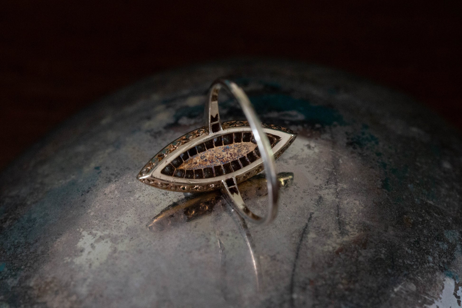 Art Deco Marquise Emerald, Diamond and Pearl Ring