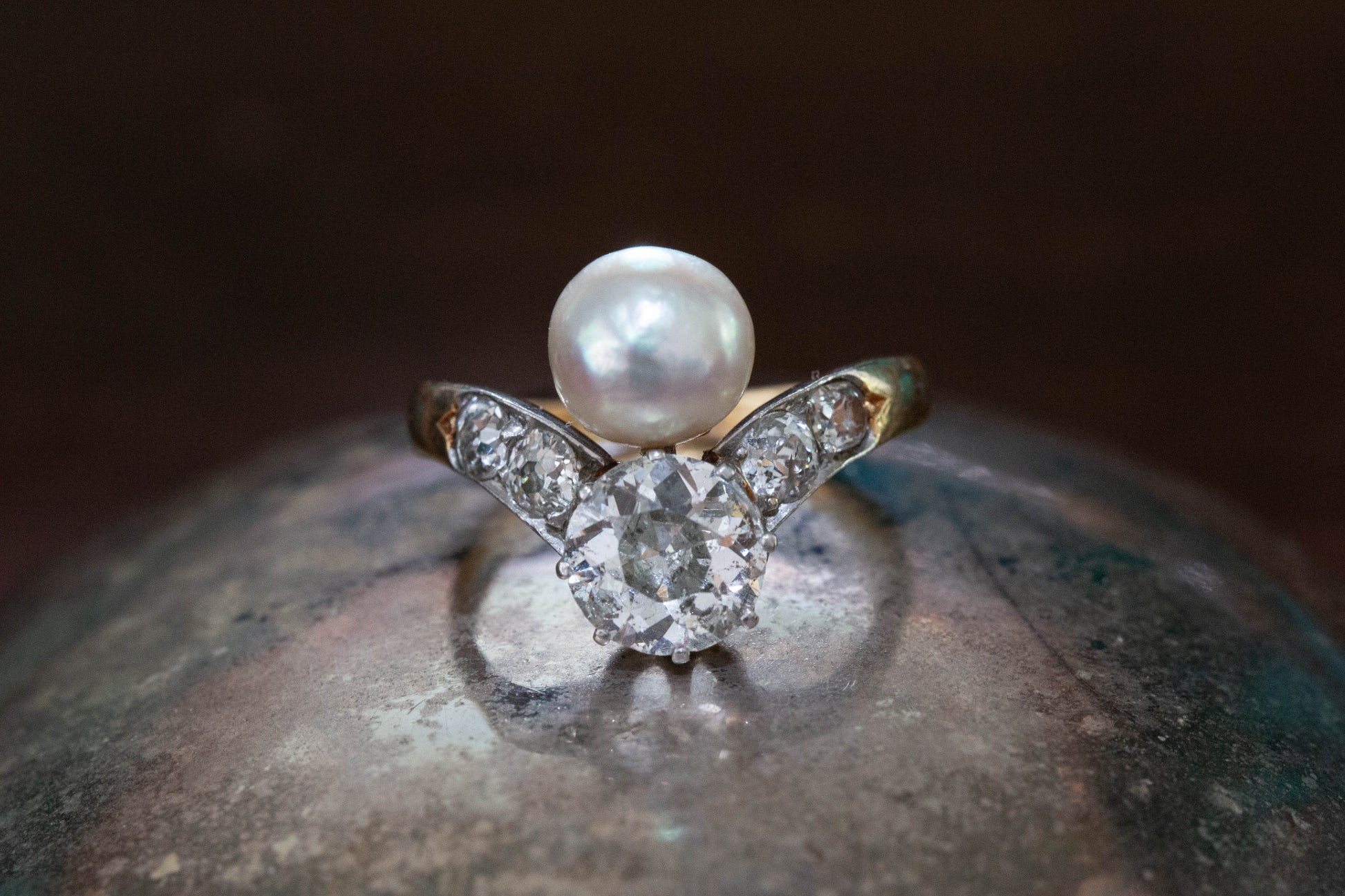 Art Deco Pearl and Diamond Dress Ring